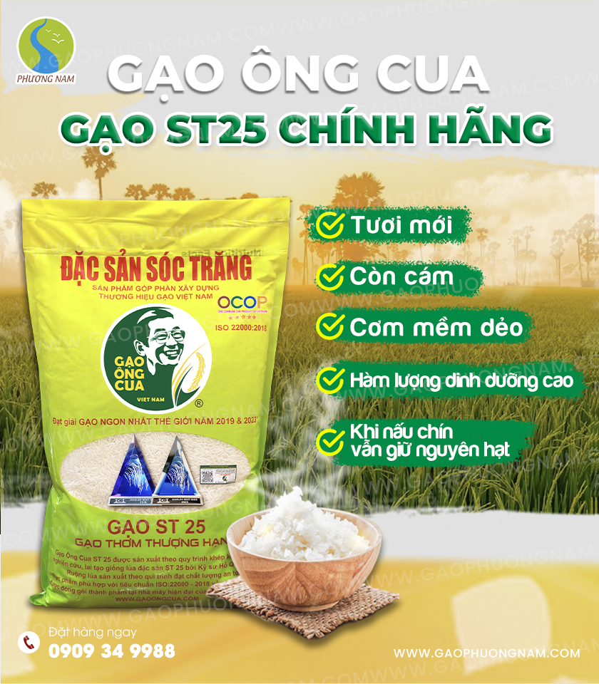 Gạo ST25 đã đạt được danh tiếng là gạo ngon nhất thế giới. Và được người tiêu dùng yêu thích gạo ST25 vì chất lượng cao, hương vị tuyệt hảo và giá trị dinh dưỡng đáng kinh ngạc.. Đây là kết quả nghiên cứu suốt 20 năm ròng rã của kỹ sư Hồ Quang Cua.