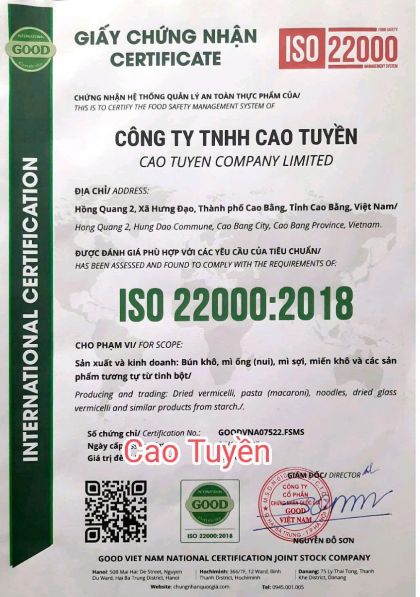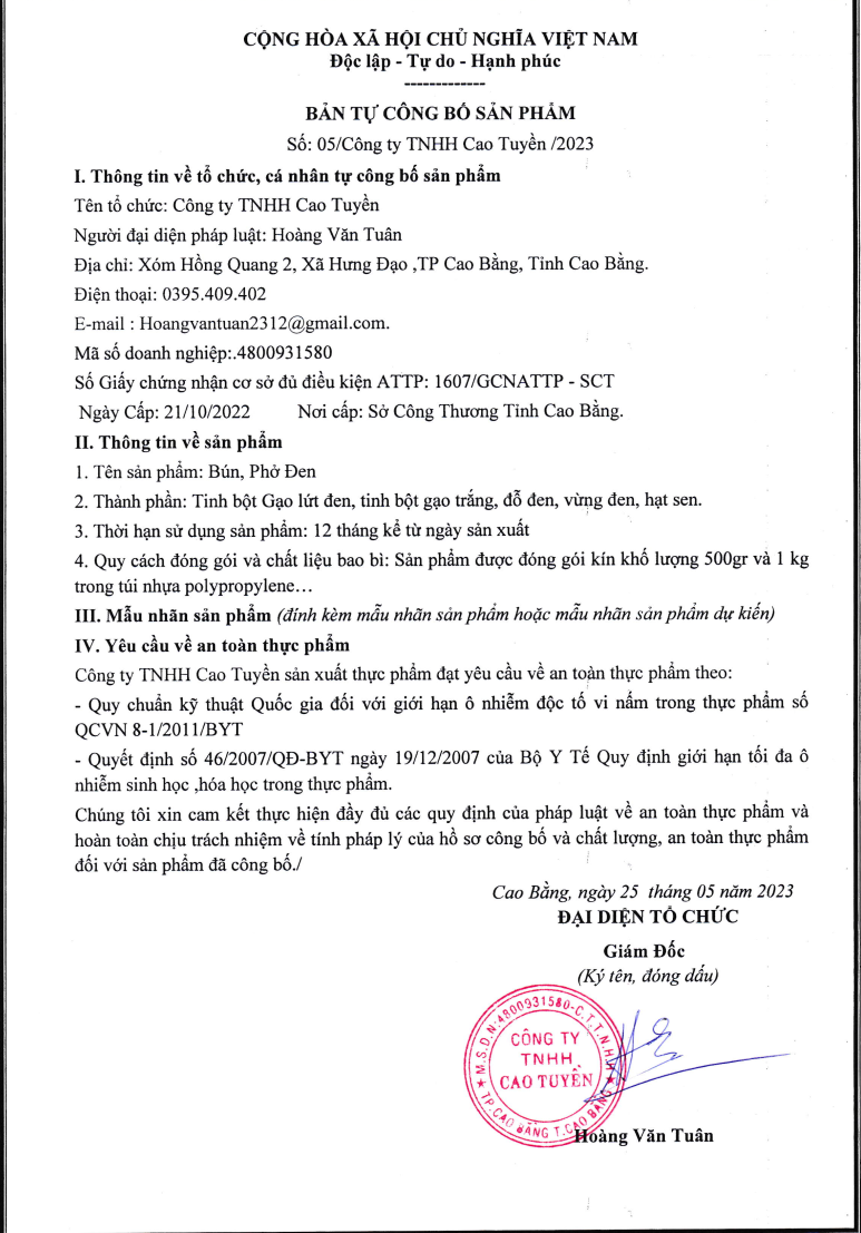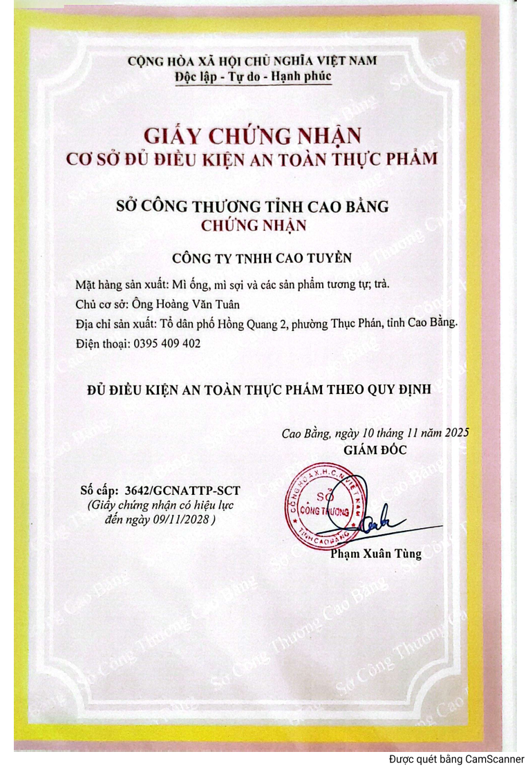- Nhà sản Xuất : Công Ty TNHH Cao Tuyền