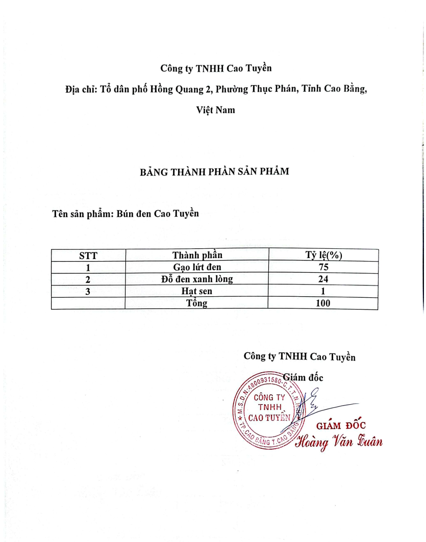 - Nhà sản Xuất : Công Ty TNHH Cao Tuyền